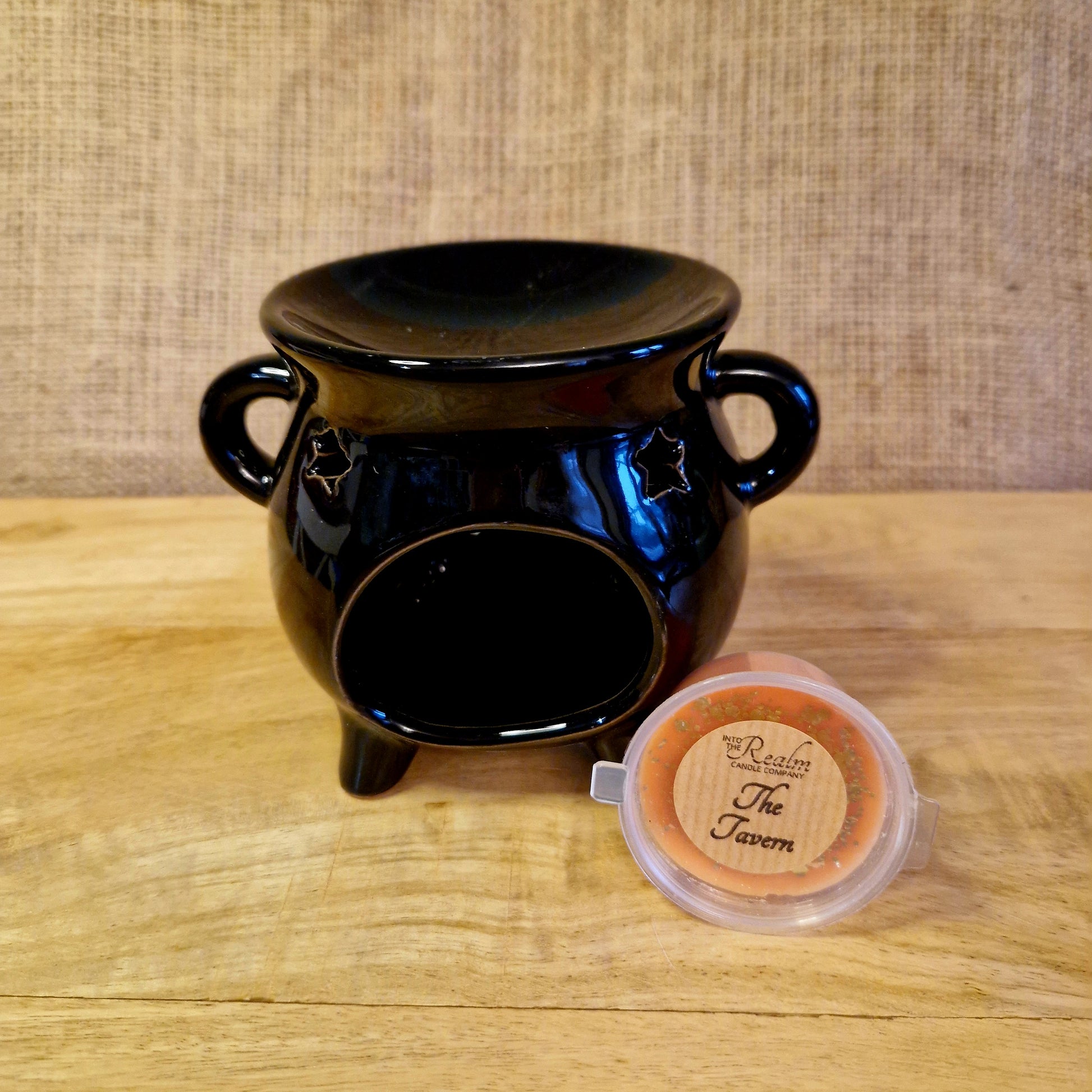 This unique black cauldron wax burner makes a great purchase for any fantasy fans. This burner is made of painted ceramic. The burner has star cut outs which come alight when a lit tealight is placed within. The burner comes packaged in a photo box.