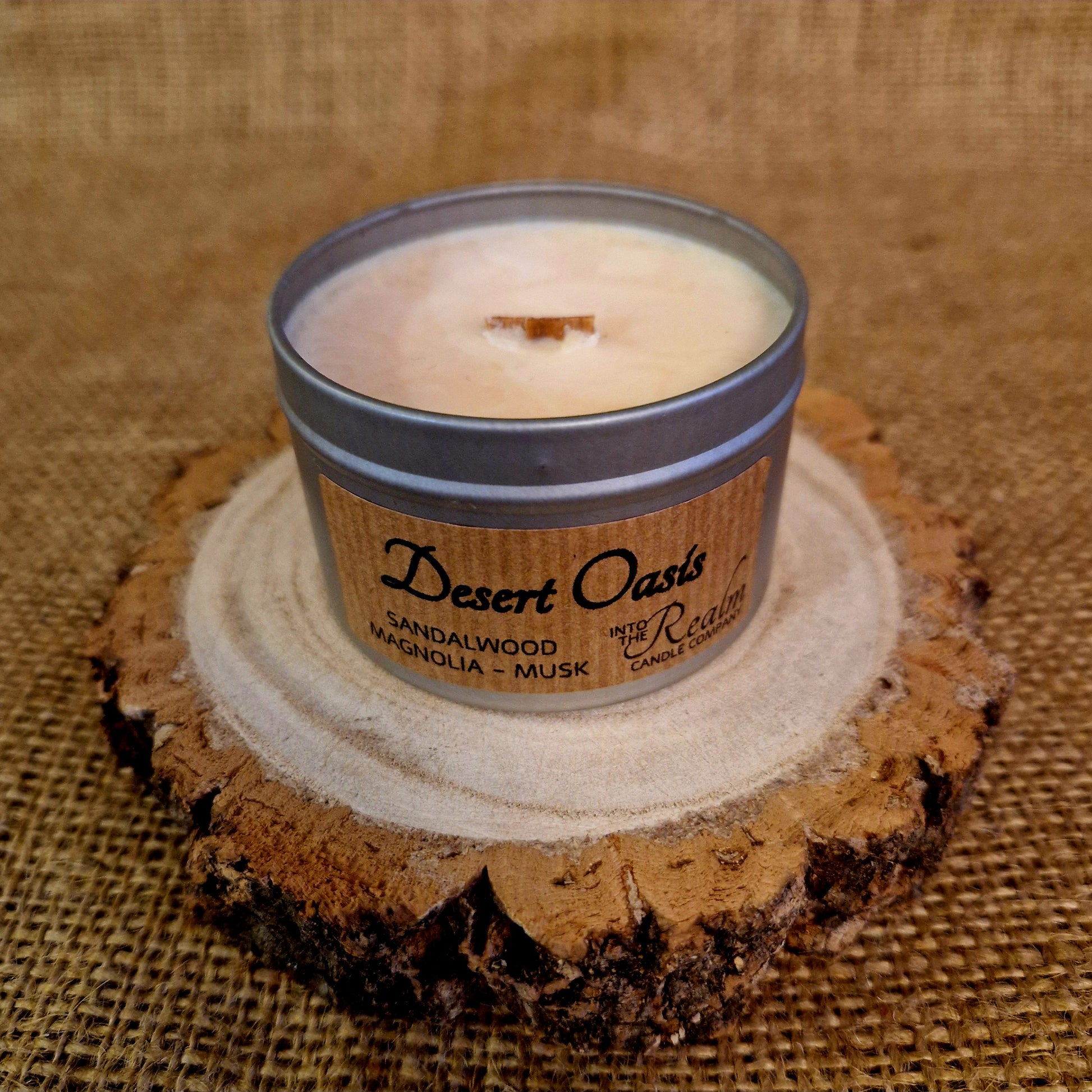 Set alight to your senses with a crackling tin, scented in Desert Oasis. The wooden wick provides a gentle crackle effect and a larger flame to immerse you into the Realm.
