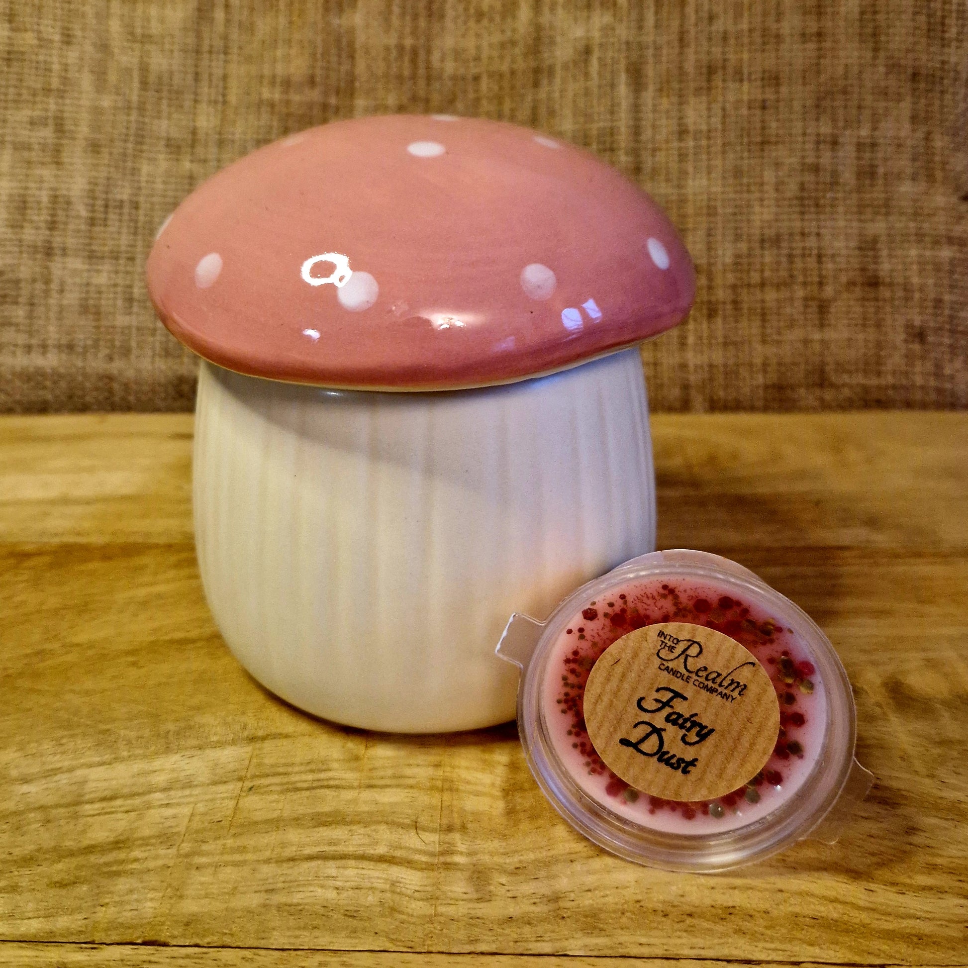 This cute pink mushroom wax burner makes a great purchase for any cottage core fan. The burner is made of painted glossy ceramic and comes packaged in a photo box. The mushroom lid is removable, to place the wax melt within, and the stalk has a cut-out for a tealight. Once you're done using your wax melt, you can replace the lid, and the mushroom makes the perfect décor item.