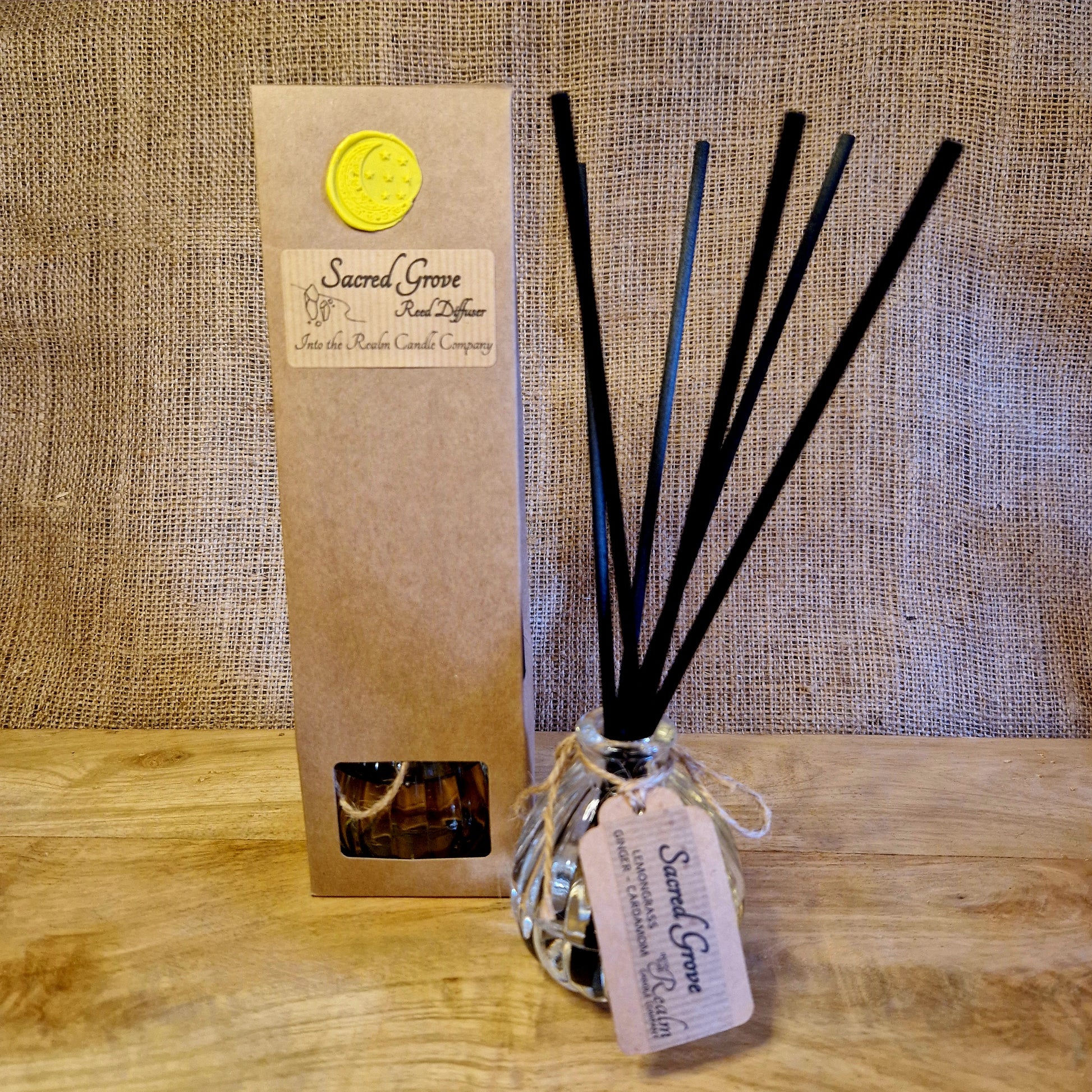 Bring the enchantment of aroma into your home with a Reed Diffuser, scented in Sacred Grove. The perfect way to bring fragrance into your home without a flame, that lasts!